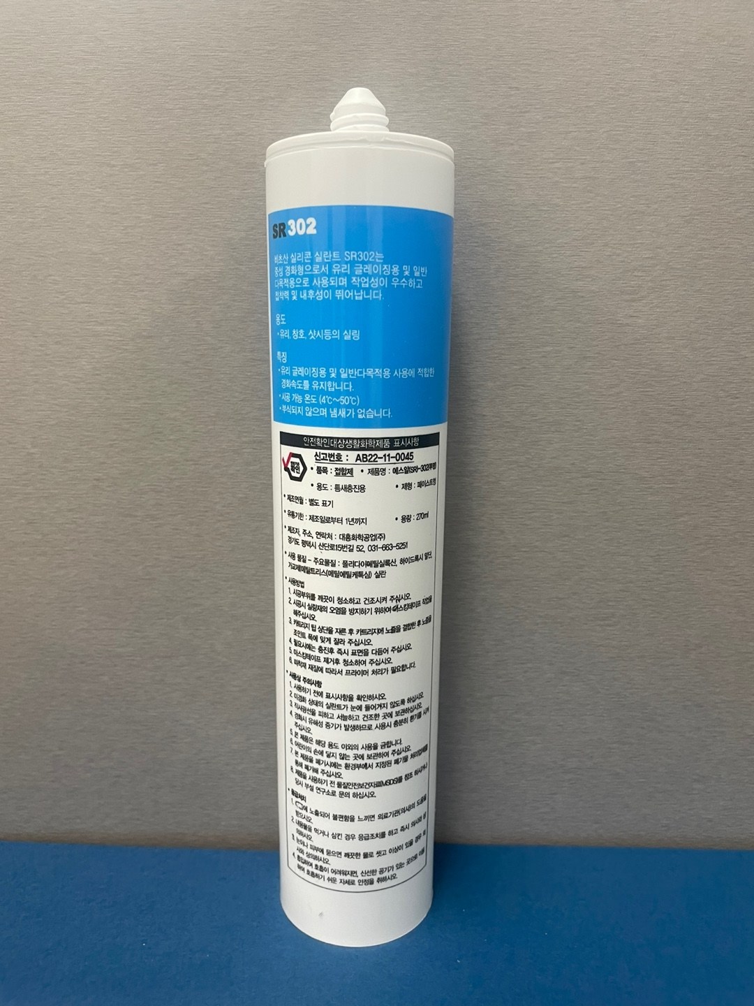 | 품목 및 제품명 | 접합제 / 에스알(SR)-302(투명) | 용도(표백제의 경우 계열을 함께표시) 및 제형 | 틈새충진용 / 페이스트형 |