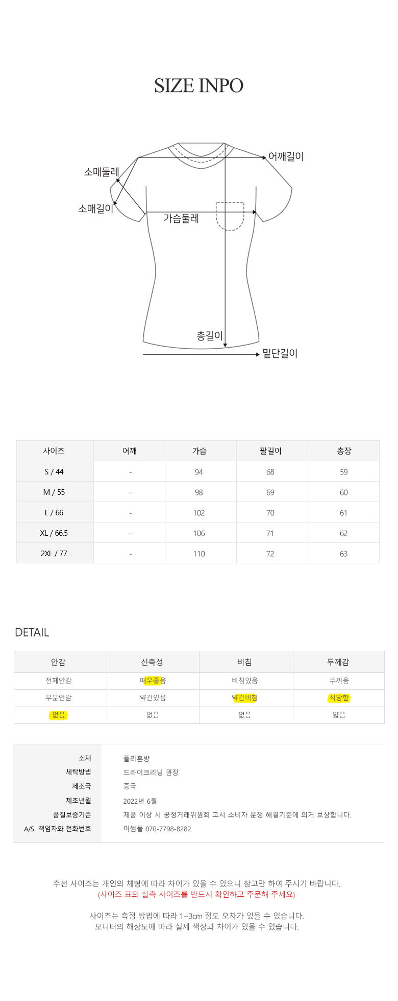 | 제조국 | 중국 | 세탁방법 및 취급시 주의사항 | 컨텐츠참조 |
