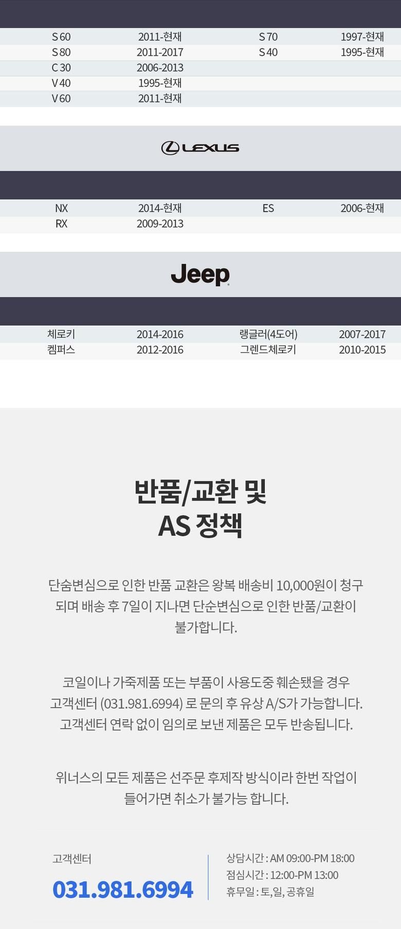 | KC 인증정보(자동차관리법에 따른 자기인증 대상 자동차부품에 한함) | 상품 상세페이지 참조 | 제조자(수입자) | 상품 상세페이지 참조 |