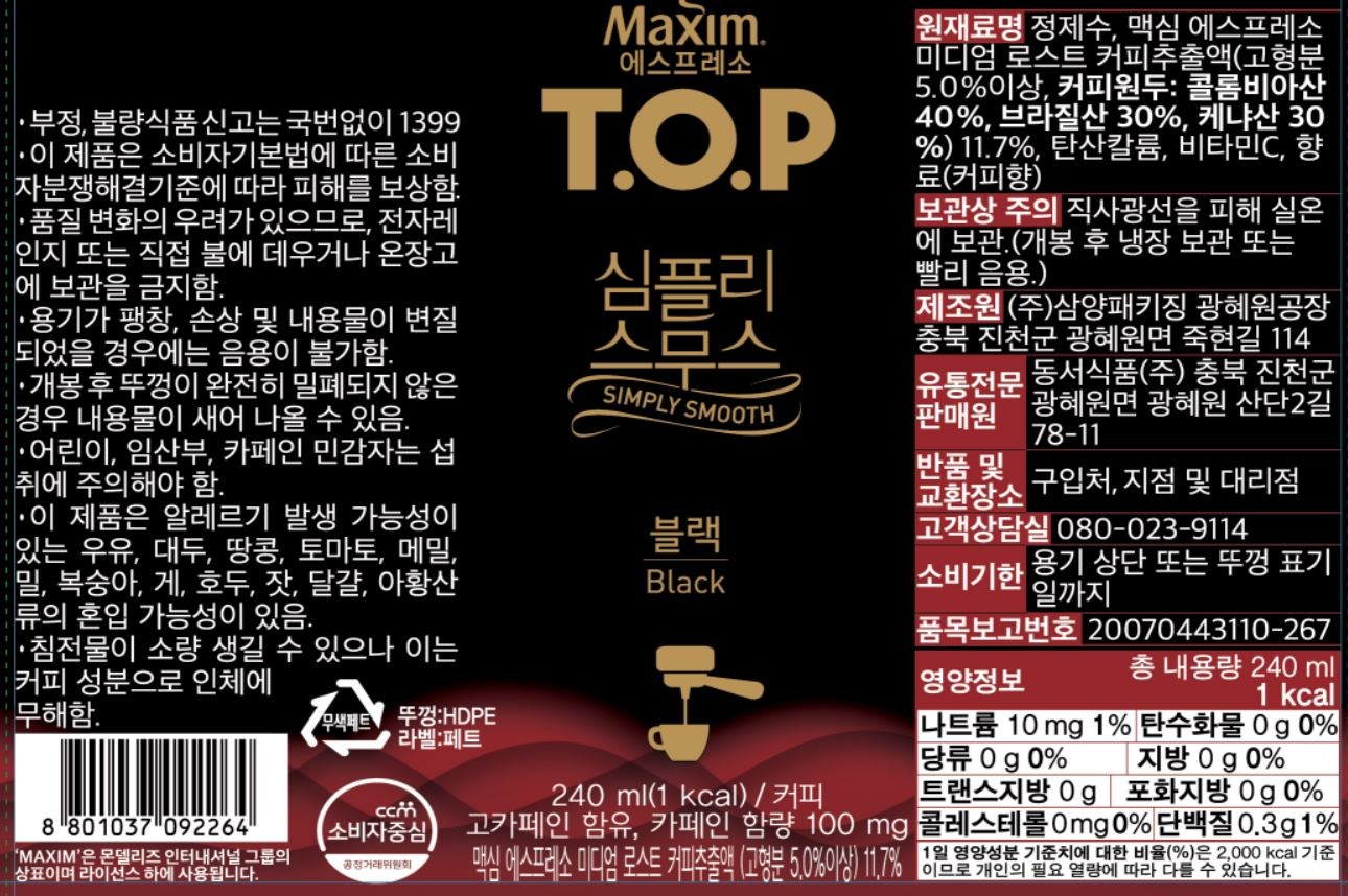 - 맛/향: 아메리카노/블랙