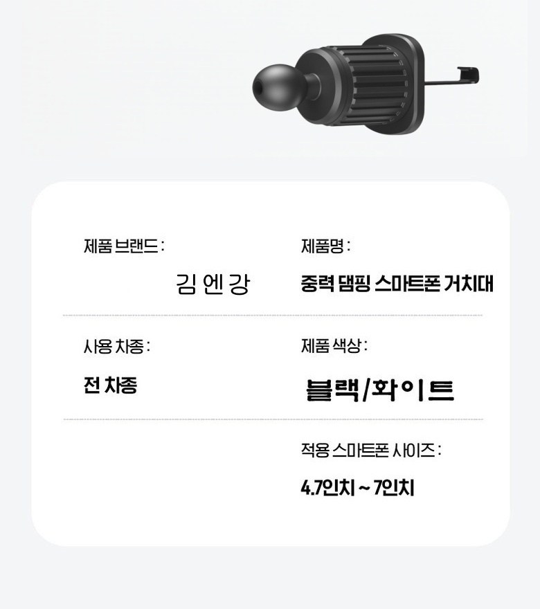 | 품명 및 모델명 | 제이엔케이 차량용 휴대폰거치대 | 인증/허가 사항 | 해당없음 |