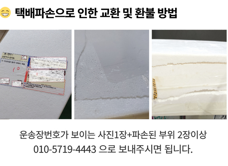 - ㆍ모니터 해상도의 차이로 인해 색상이나 이미지가 실제와 달라, 고객이 단순 변심으로 교환/반품을 무료로 요청하는 경우