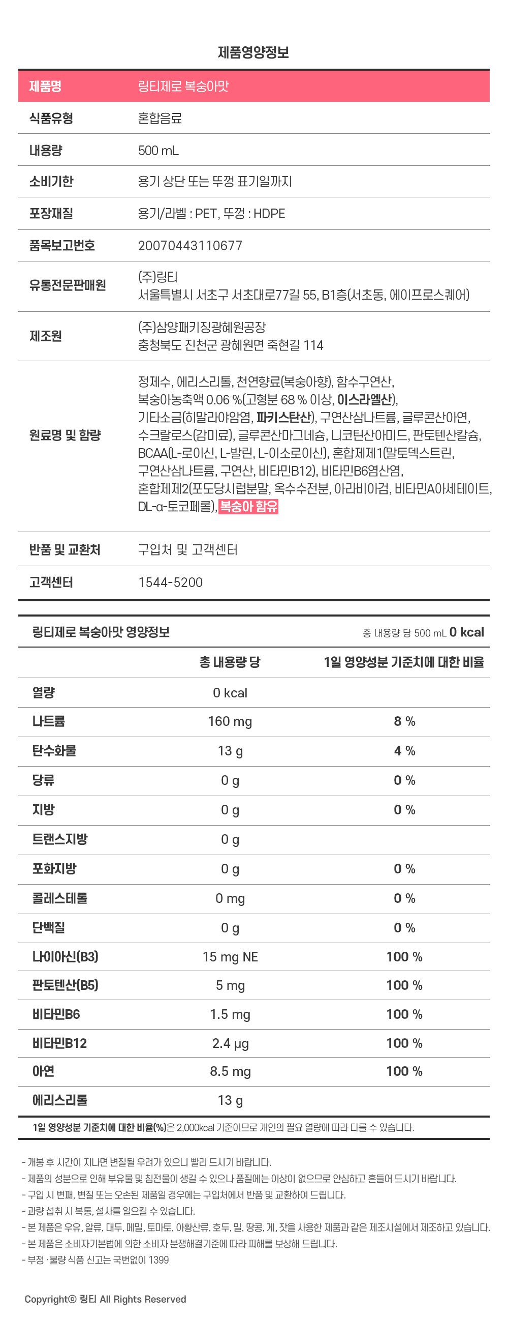 | 생산자 및 소재지 | 컨텐츠 참조 | 제조연월일, 소비기한 또는 품질유지기한 | 업데이트 예정 |