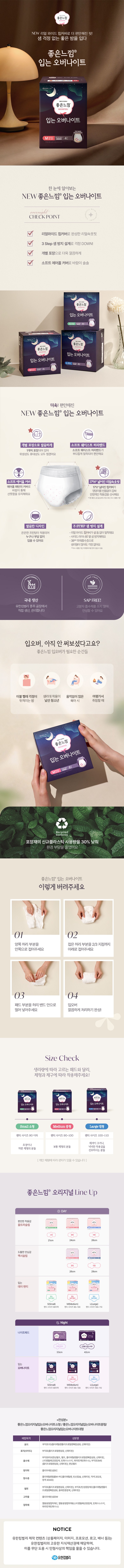 | 품명 및 모델명 | 좋은느낌입는오버나이트뉴중형 | 인증/허가 사항 | 의약외품 |