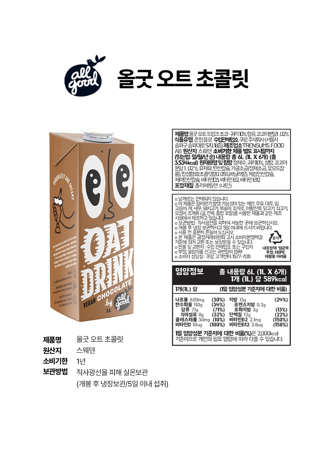 | 포장단위별 내용물의 용량(중량), 수량 | 1L, 6개 | 원재료명 및 함량 | 컨텐츠 참조 |