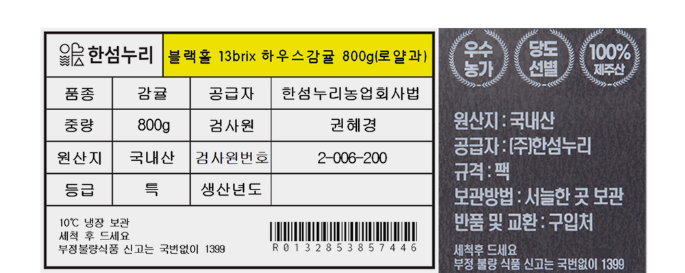 | 제조연월일, 소비기한 또는 품질유지기한 | 업데이트 예정 | 세부 품목군별 표시사항 | 농수산물:-유전자변형:해당없음-지리적표시사항:해당없음 |