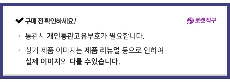 | 교환/반품 신청 기준일 | ㆍ단순변심에 의한 교환/반품은 제품 수령 후 7일 이내까지, 교환/반품 제한사항에 해당하지 않는 경우에만 가능 (배송비용과 교환/반품 비용 왕복배송비 고객부담) ㆍ상품의 내용이 표시·광고의 내용과 다른 경우에는 상품을 수령한 날부터 3개월 이내, 그 사실을 안 날 또는 알 수 있었던 날부터 ㆍ해외배송 특성상, '상품준비중'단계 이후부터 교환/반품은 상품 수령 후 가능 |