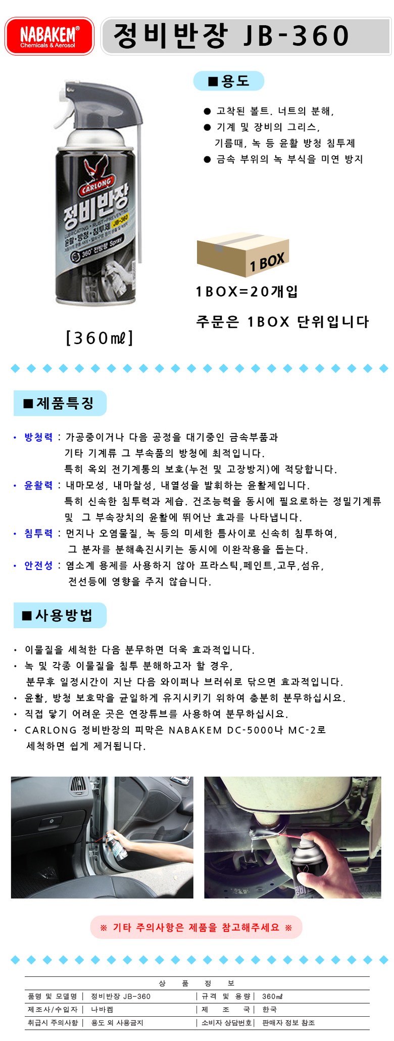 나바켐/카롱/정비반장/JB-360/윤활/방청/360ml/1BOX, 1개 420ml, 20개