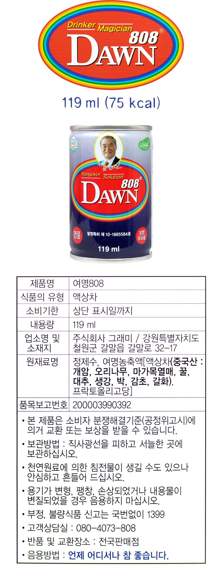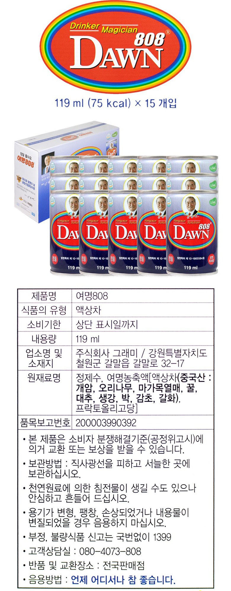 | 제품명 | 그래미 여명 808 | 식품의 유형 | 상품 상세페이지 참조 |
