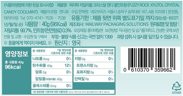 - 캔디류 맛/향: 민트/박하