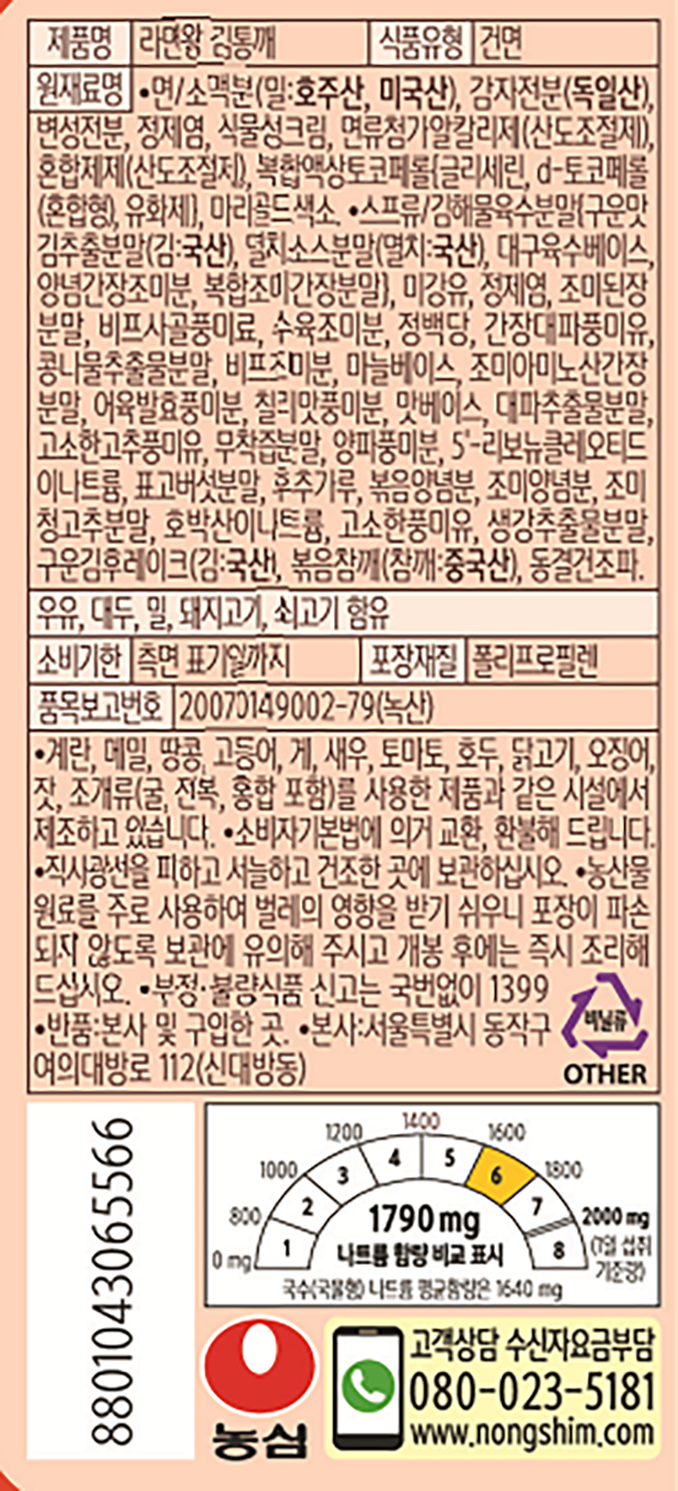 | 제품명 | 라면왕 김통깨 | 식품의 유형 | 건면 |