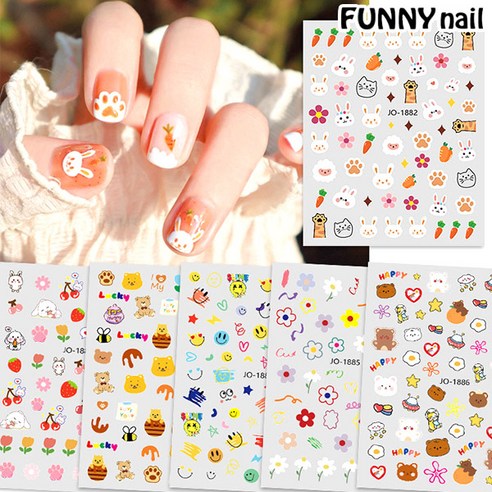네일아트 귀욤 꽃 캐릭터 네일스티커 6종