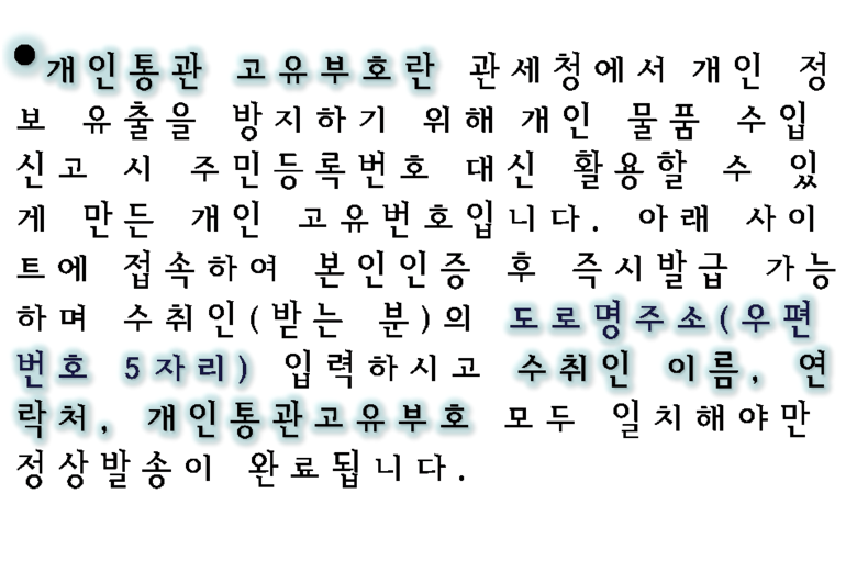 - 원활한 통관을 위해 개인통관고유부호가 필요합니다.