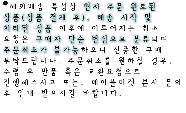 - 상품문의 및 후기게시판을 통해 취소나 환불, 반품 등은 처리되지 않습니다.