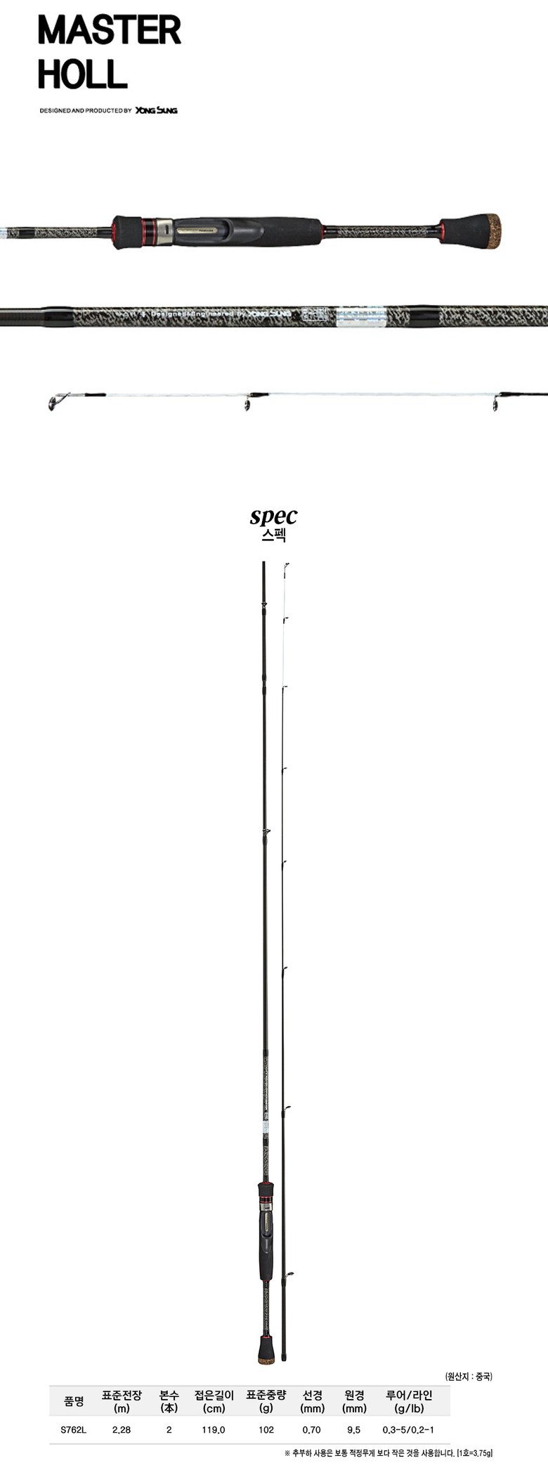 | 품명 및 모델명 | 용성 마스터 홀 S762L 호래기 볼락 루어낚시대, 단일상품 | 크기, 중량 | 컨텐츠 참조 |