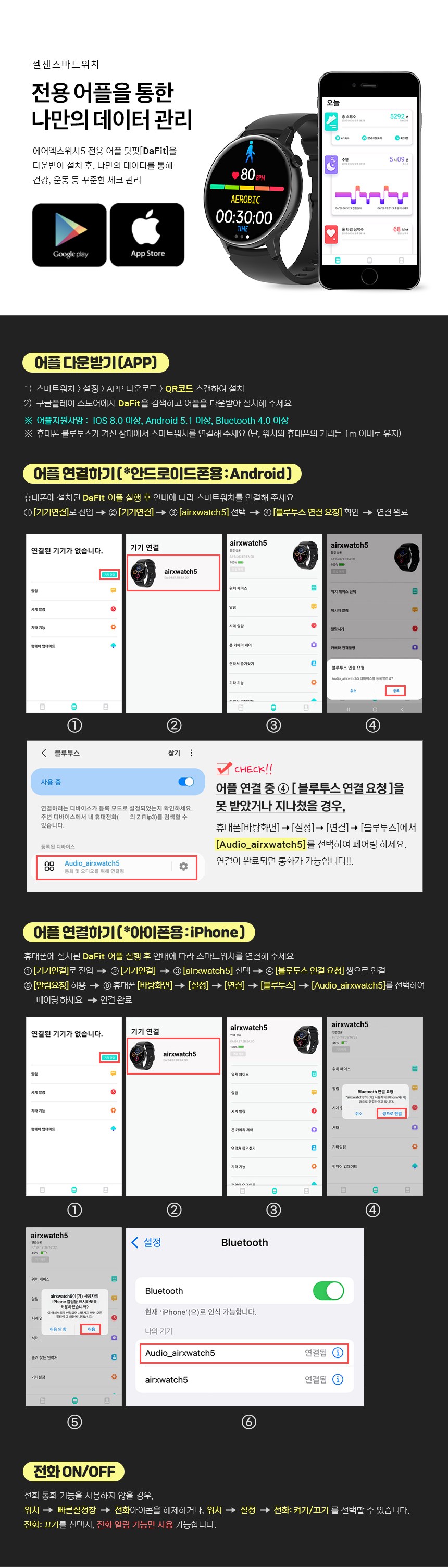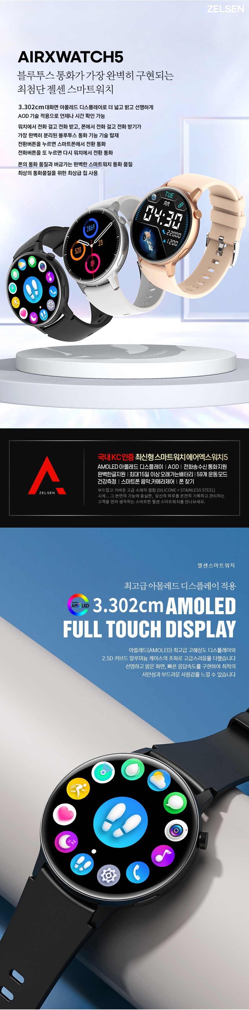 | 품명 및 모델명 | 젤센 블루투스 스마트워치 / 에어엑스워치5(airxwatch5) | KC 인증정보 | 본품:R-R-sAc-airxwatch5 /전지:YU101359-20001A |
