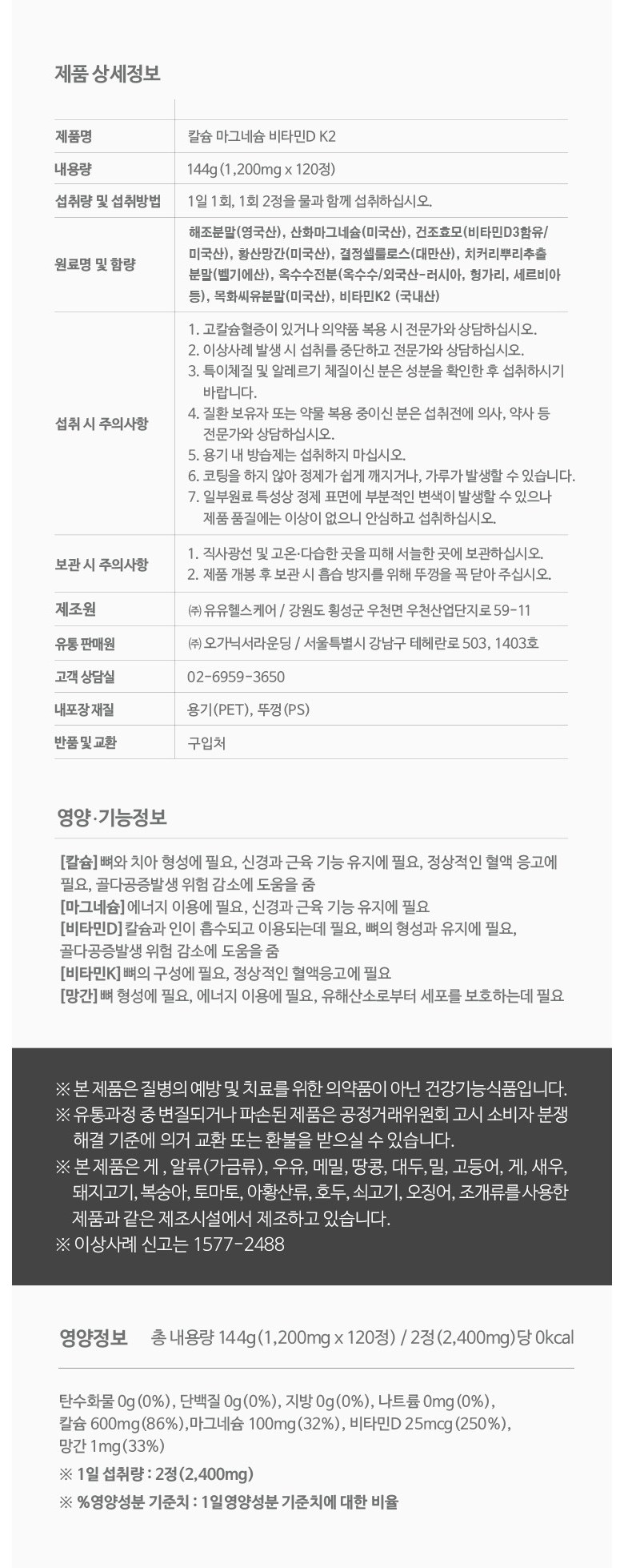 | 원료명 및 함량 | 상품 상세페이지 참조 | 영양정보 | 상품 상세페이지 참조 |