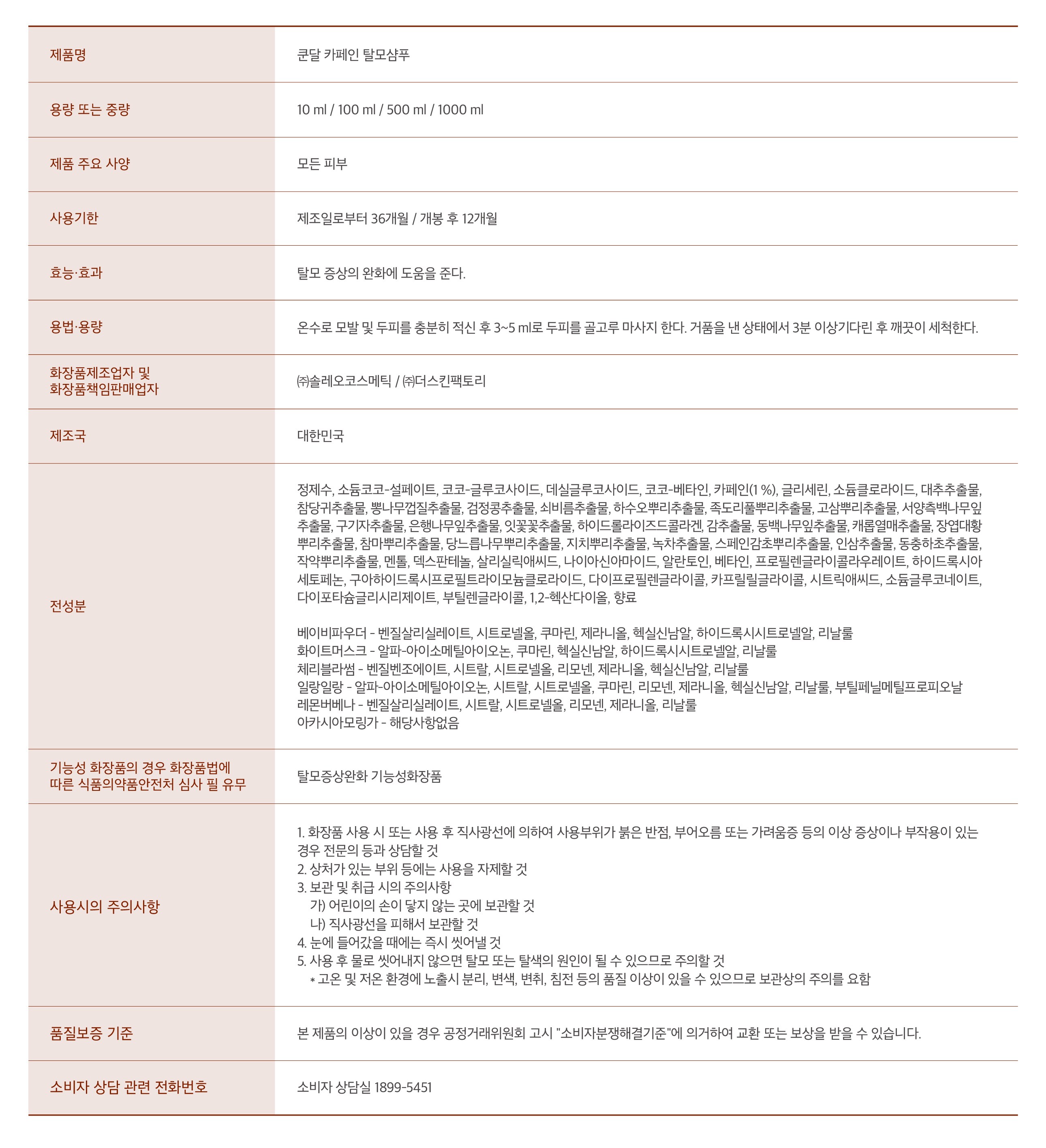 | 용량(중량) | 500ml | 제품 주요 사양 | 모든모발용 |