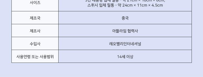 | 제조국(원산지) | 상품 상세페이지 참조 | 제조자(수입자) | 상품 상세페이지 참조 |