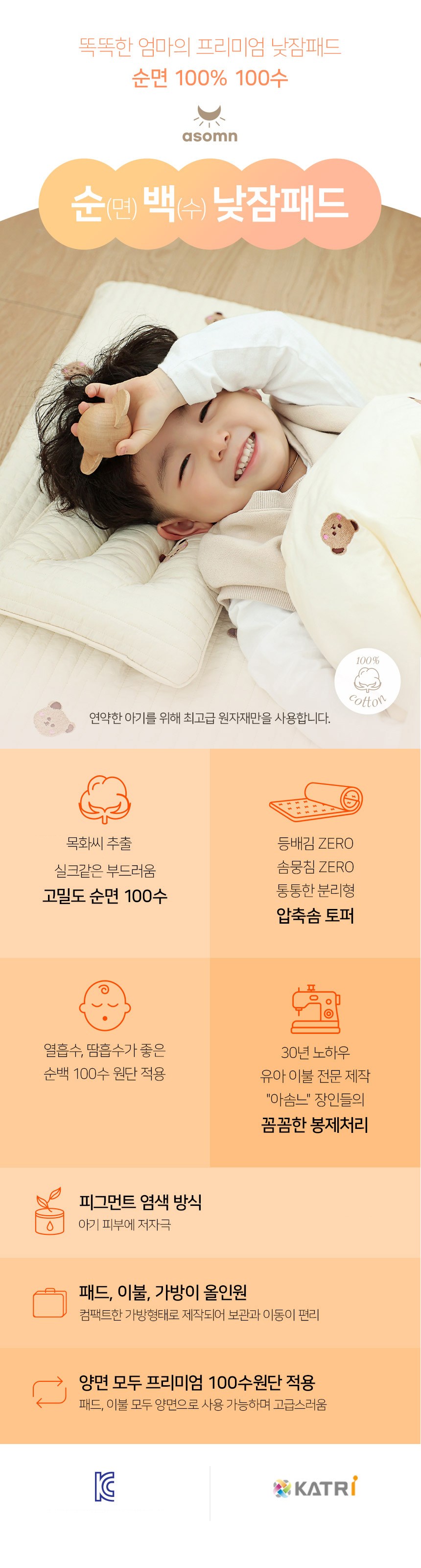 | 품명 및 모델명 | 아솜느 유아용 순면 100수 낮잠패드 | KC 인증정보 | CB014H382-9001 |