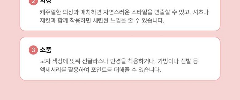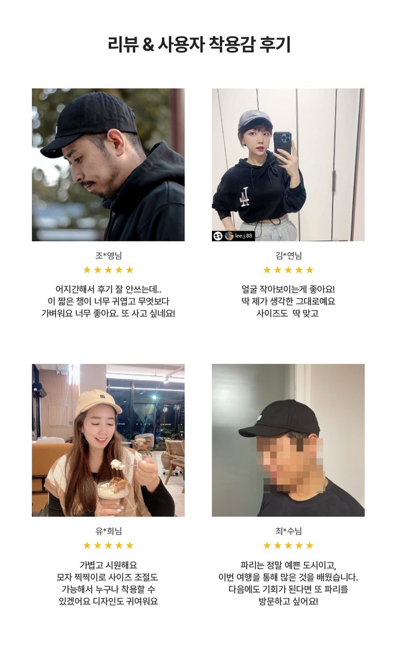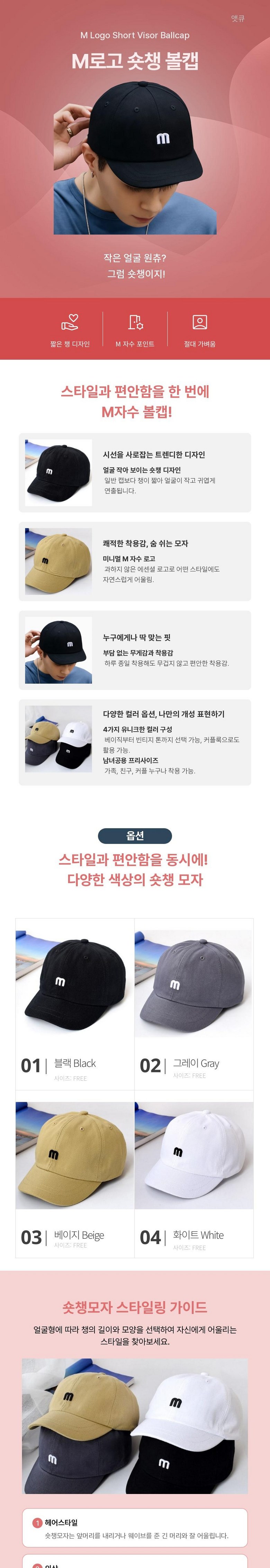 - 모자 종류: 캡모자/야구모자