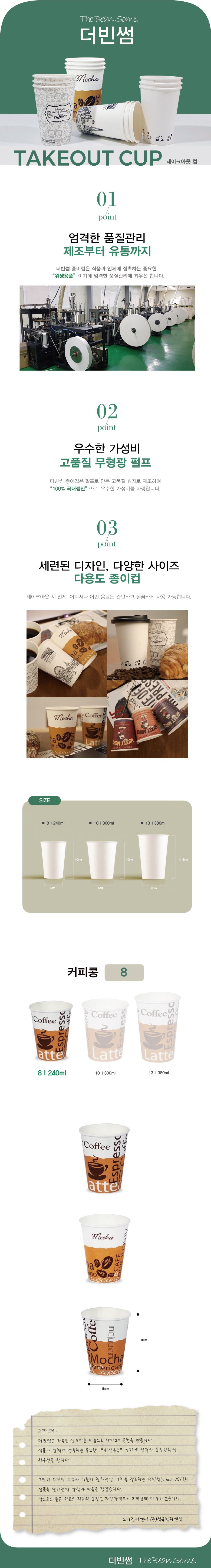 | 품명 및 모델명 | 더빈썸 커피콩 테이크아웃 종이컵 240ml | 재질 | 펄프 |