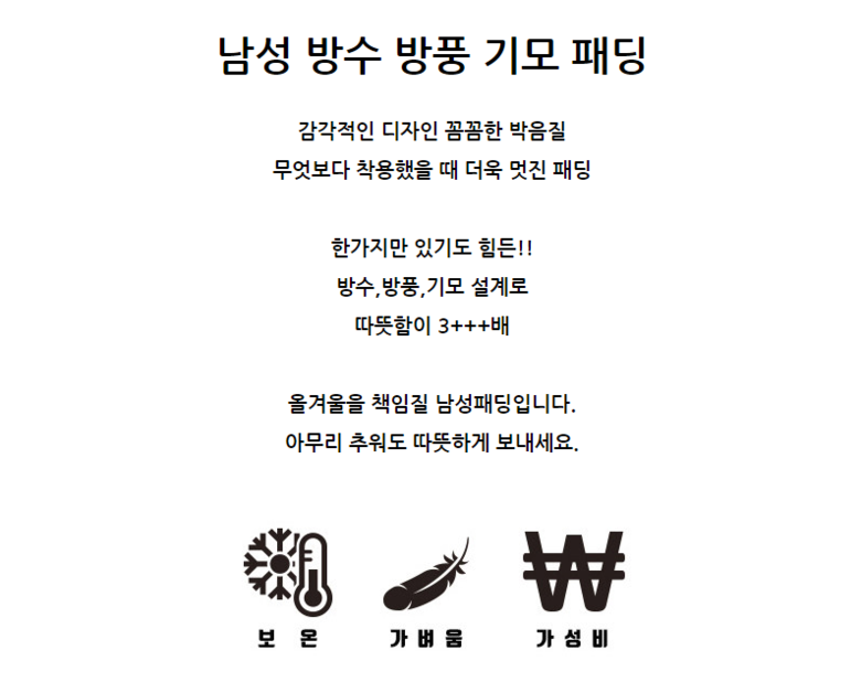 | 제품 소재 | 기모,폴리에스테르 | 색상 | 블랙,네이비,카키 |