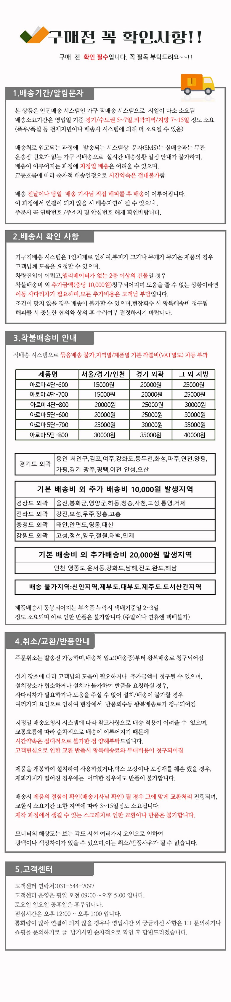 - ㆍ교환/반품에 관한 일반적인 사항은 판매자가 제시사항보다 관계법령이 우선합니다.