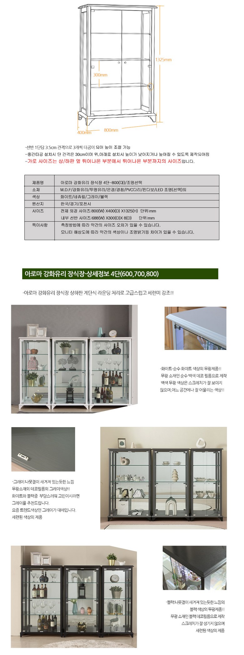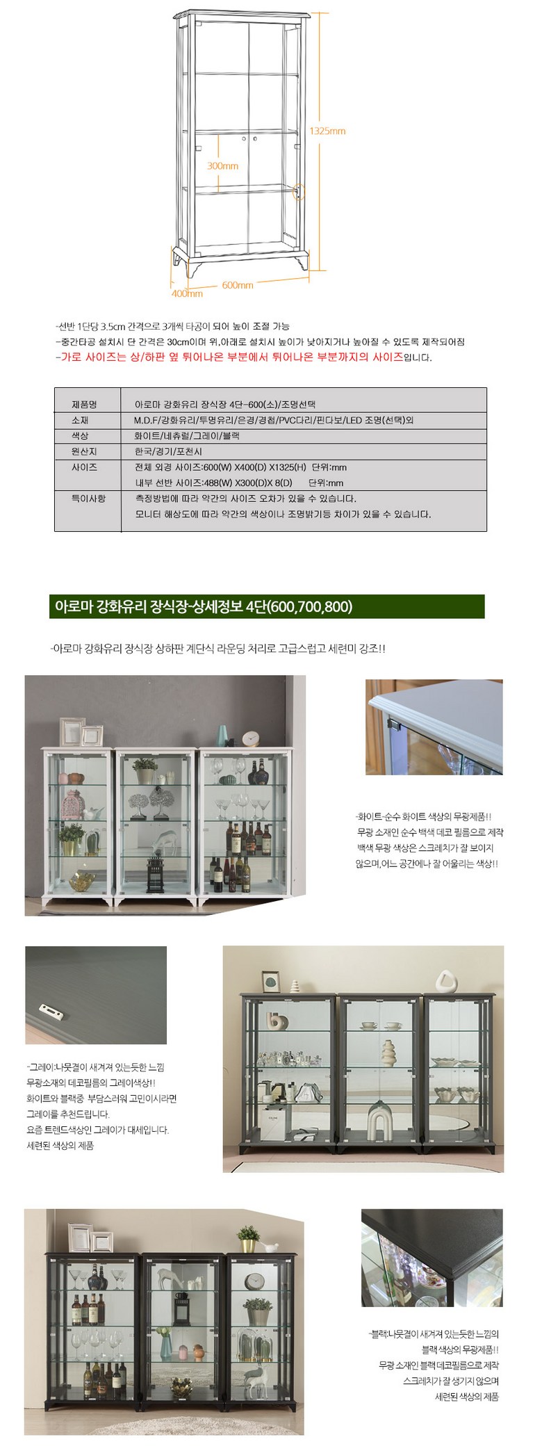 | 품명 | 아로마강화유리장식장 | KC 인증정보 | 무 |