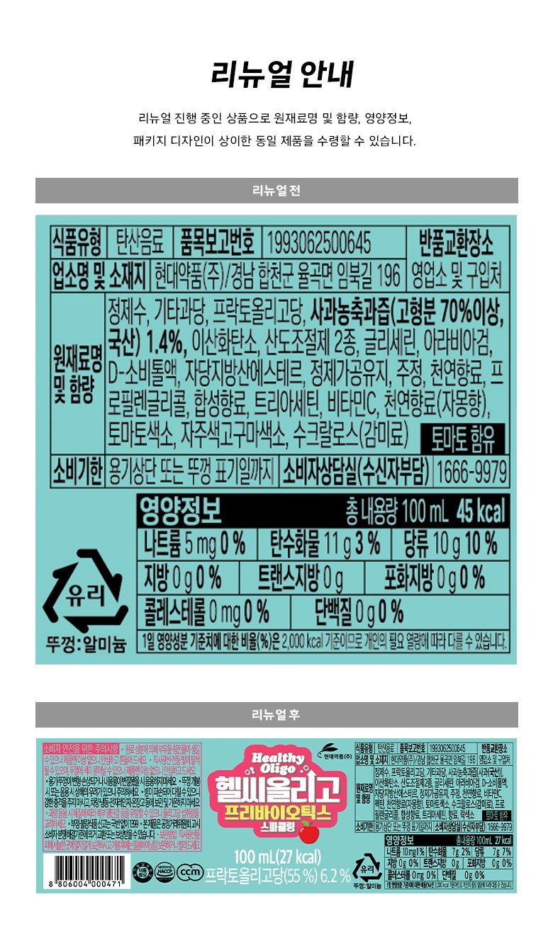 | 제품명 | 헬씨 올리고 | 식품의 유형 | 탄산음료 |