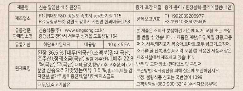 신송 즉석 된장국 지함