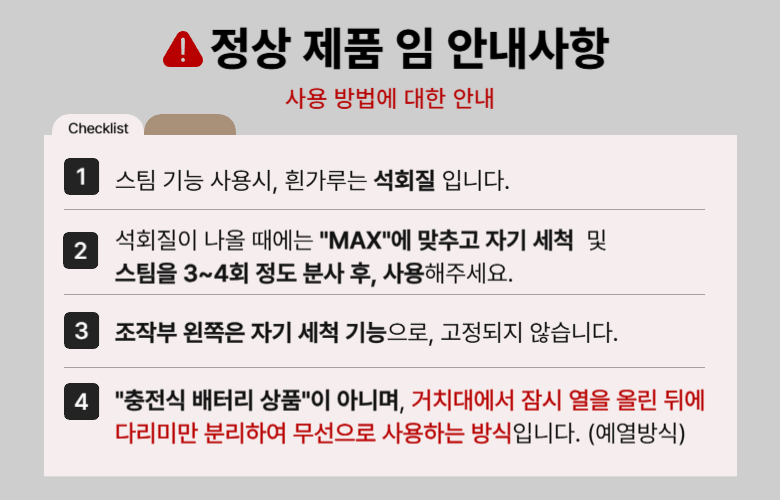 - 가격, 판매자, 교환/환불 및 배송 등 해당 상품 자체와 관련 없는 문의는 고객센터 내 1:1 문의하기를 이용해주세요.