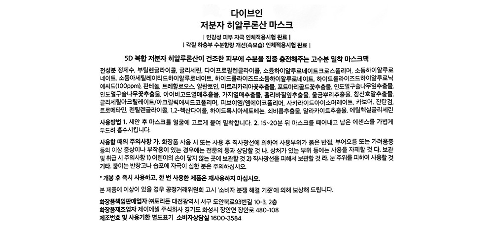 | 화장품제조업자, 화장품책임판매업자 및 맞춤형화장품판매업자 | 컨텐츠 참조 | 제조국 | 한국 |