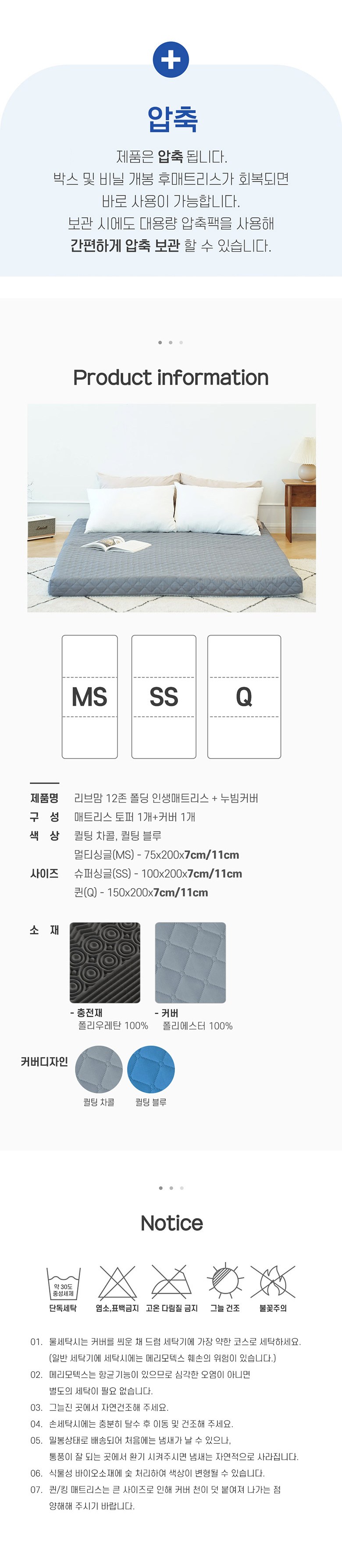 | 품명 | 리브맘 12존 폴딩 인생 매트리스 + 누빔커버 | KC 인증정보 | 해당없음 |