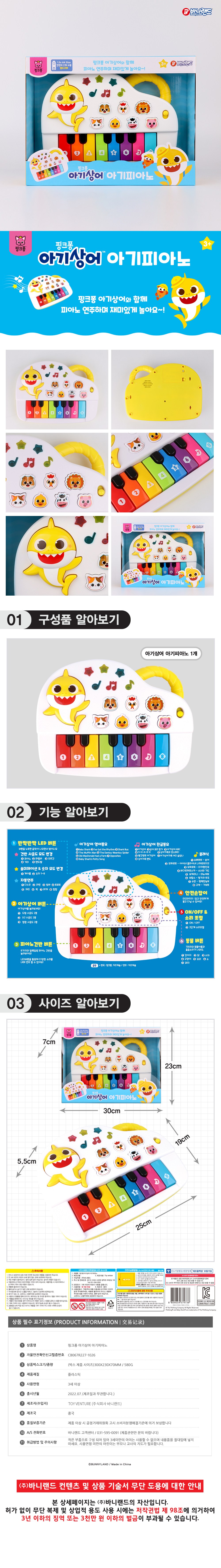 | 품명 및 모델명 | 바니랜드 핑크퐁 아기상어 아기피아노 | KC 인증정보 | CB067R227-1026 |