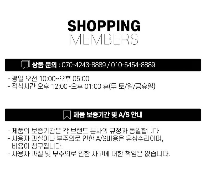 - ㆍ모니터 해상도의 차이로 인해 색상이나 이미지가 실제와 달라, 고객이 단순 변심으로 교환/반품을 무료로 요청하는 경우
