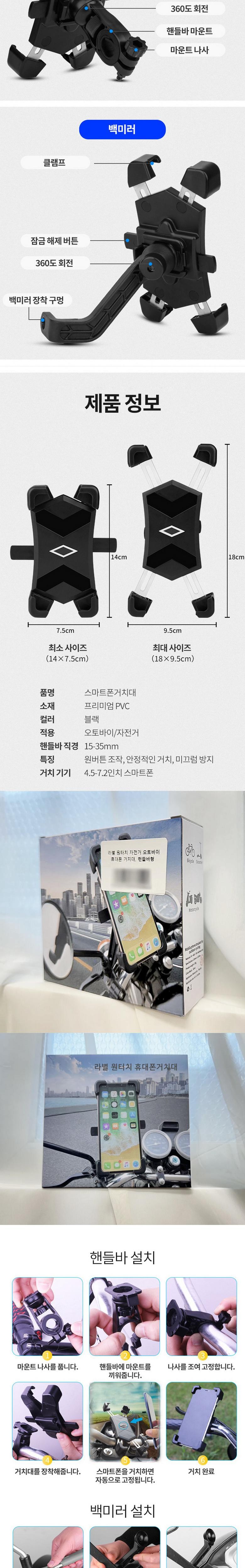 | 품명 및 모델명 | 라별 원터치 자전거 오토바이 휴대폰 거치대 | KC 인증정보 | 해당없음 |