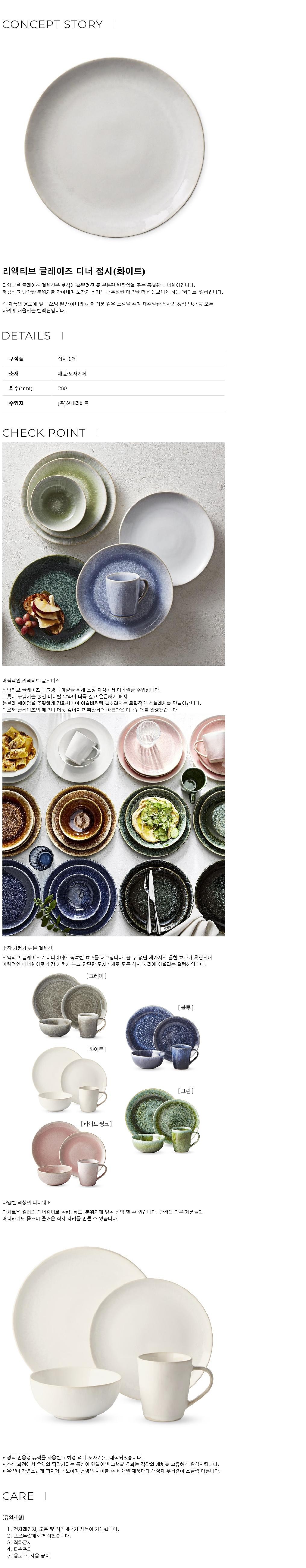 | 품명 및 모델명 | 리액티브 글레이즈 디너 접시 (화이트) | 재질 | 컨텐츠참조 |