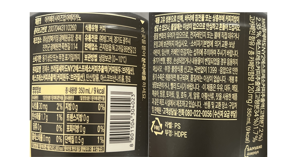 | 포장단위별 내용물의 용량(중량), 수량 | 350ml x 20개 | 원재료명 및 함량 | 컨텐츠 참조 |