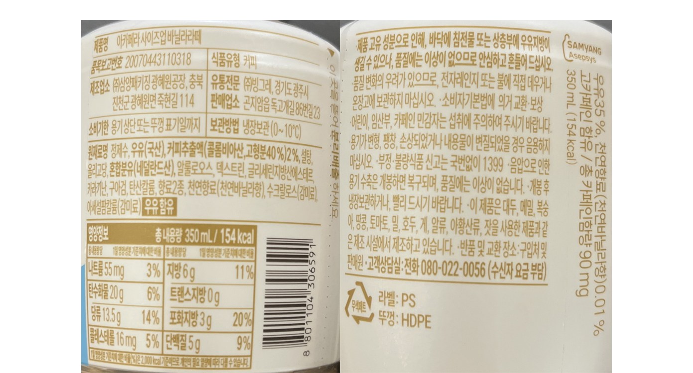 | 포장단위별 내용물의 용량(중량), 수량 | 350ml x 20개 | 원재료명 및 함량 | 컨텐츠 참조 |