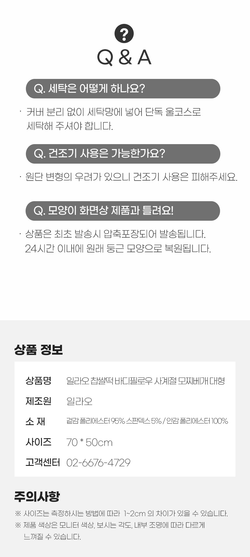 - 상품문의 및 후기게시판을 통해 취소나 환불, 반품 등은 처리되지 않습니다.