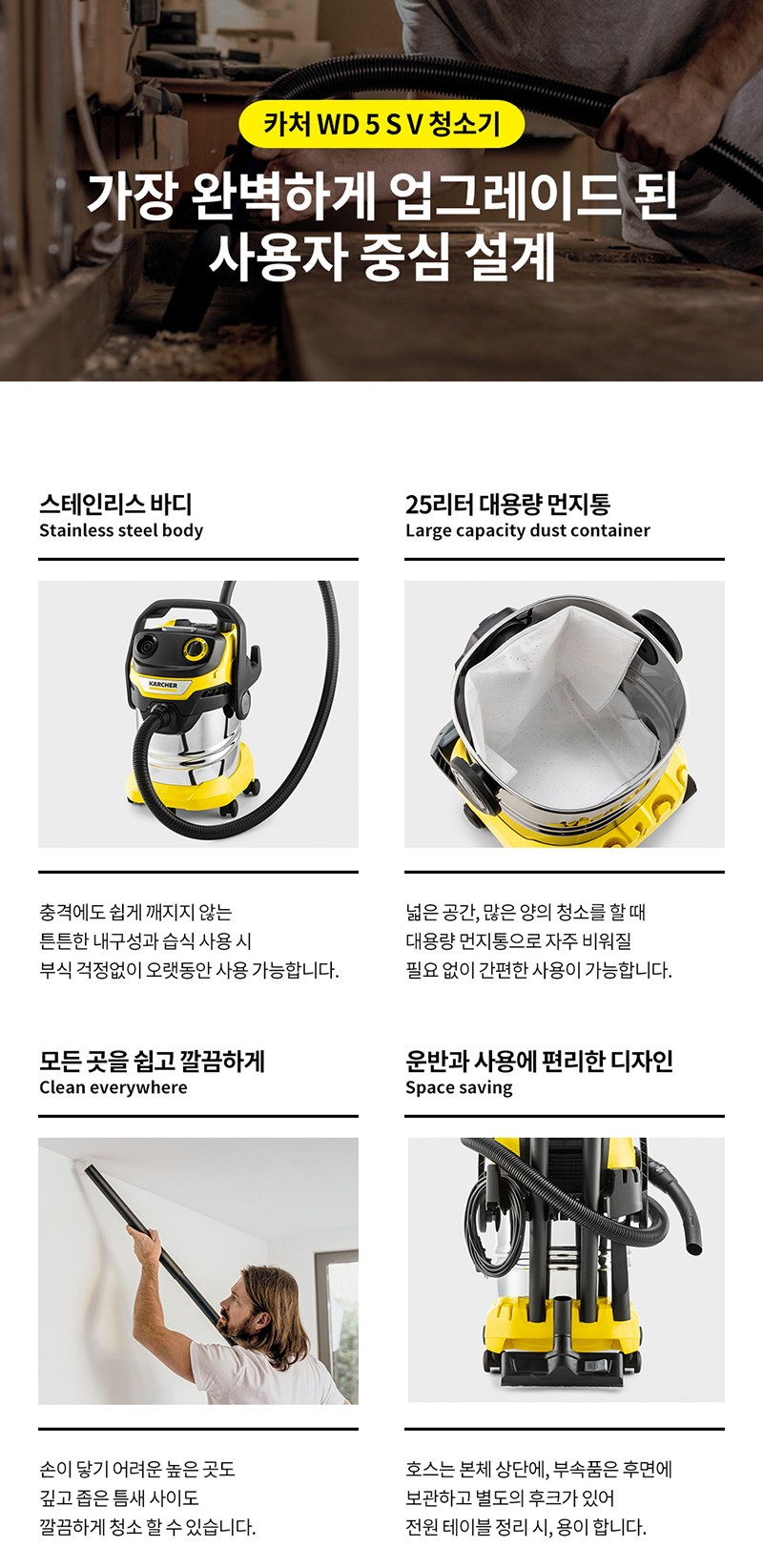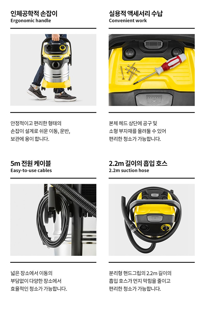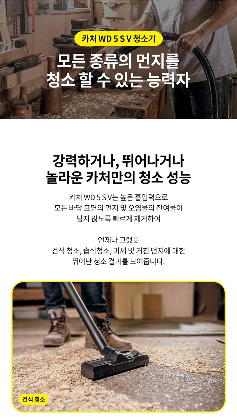 | 품명 및 모델명 | 카처 건습식 업소용청소기 WD5 S V | KC 인증정보 | SW07690-21004, R-R-KC9-WD5 |