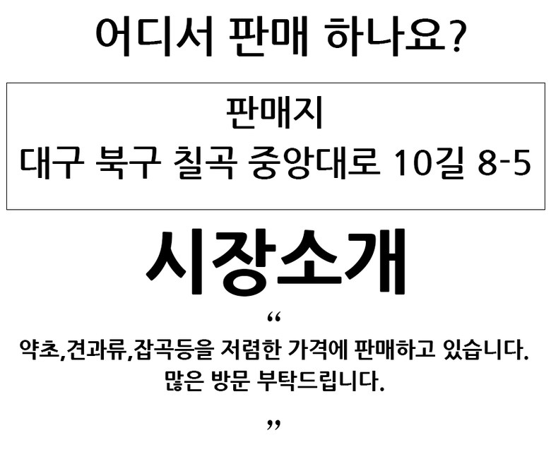 상호/대표자 | 지원농산 / 박성규 | 사업장 소재지 | 대구광역시 북구 칠곡중앙대로 526 칠곡시장 |