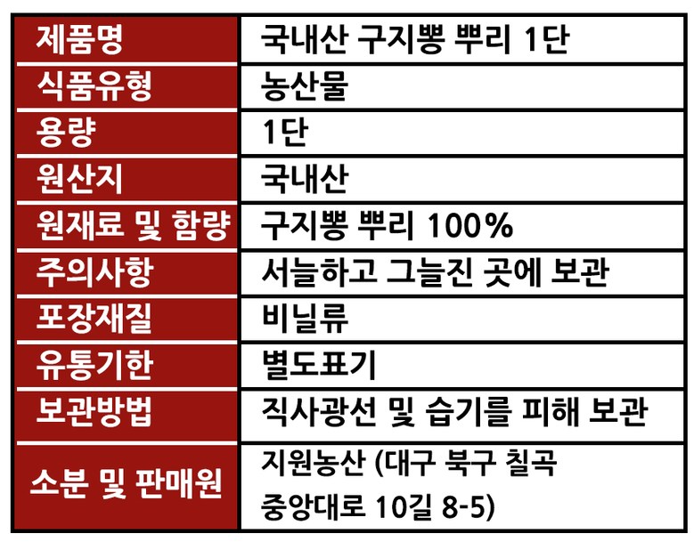 | 제조연월일, 소비기한 또는 품질유지기한 | 상품 상세페이지 참조 | 세부 품목군별 표시사항 | 상품 상세페이지 참조 |