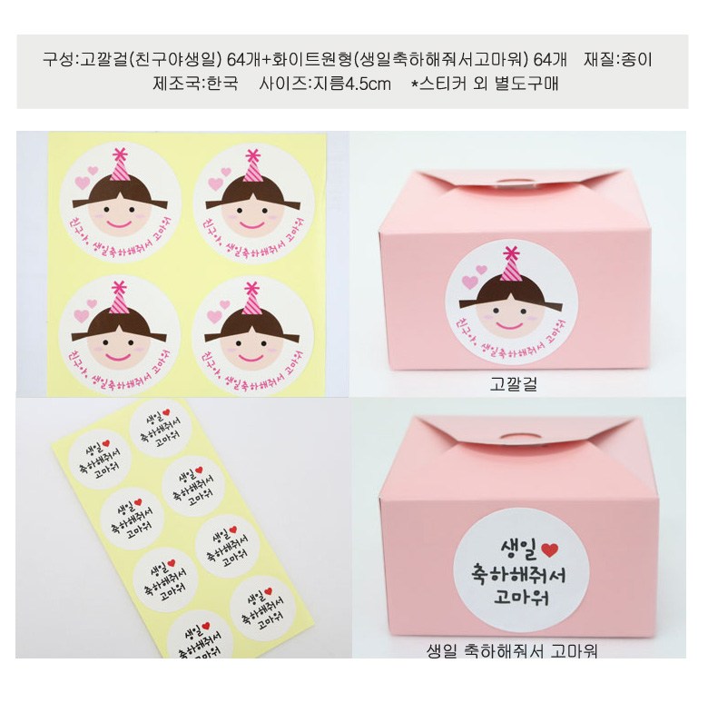 | 품명 및 모델명 | 스티커-고깔걸(친구야생일) +스티커-화이트원형(생일축하해줘서고마워) | 인증/허가 사항 | 해당없음 |