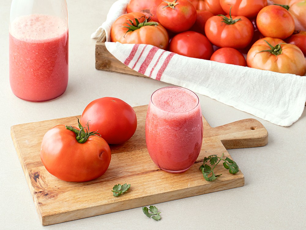 외형은 조금 투박하지만, 속은 달콤하고 상큼한 맛으로 무장한 주스용 토마토를 소개할게요. 과즙이 풍부해 갈아 마실 때 진가를 발휘하는데요. 한입 베어물면 ,은은한 단맛과 산뜻한 산미가 어우러져 입안을 상쾌하게 채워주지요. 껍질이 얇고 과육이 탄탄해 파스타나 리조또에 활용하면 아삭한 식감을 한층 더 살려준답니다.