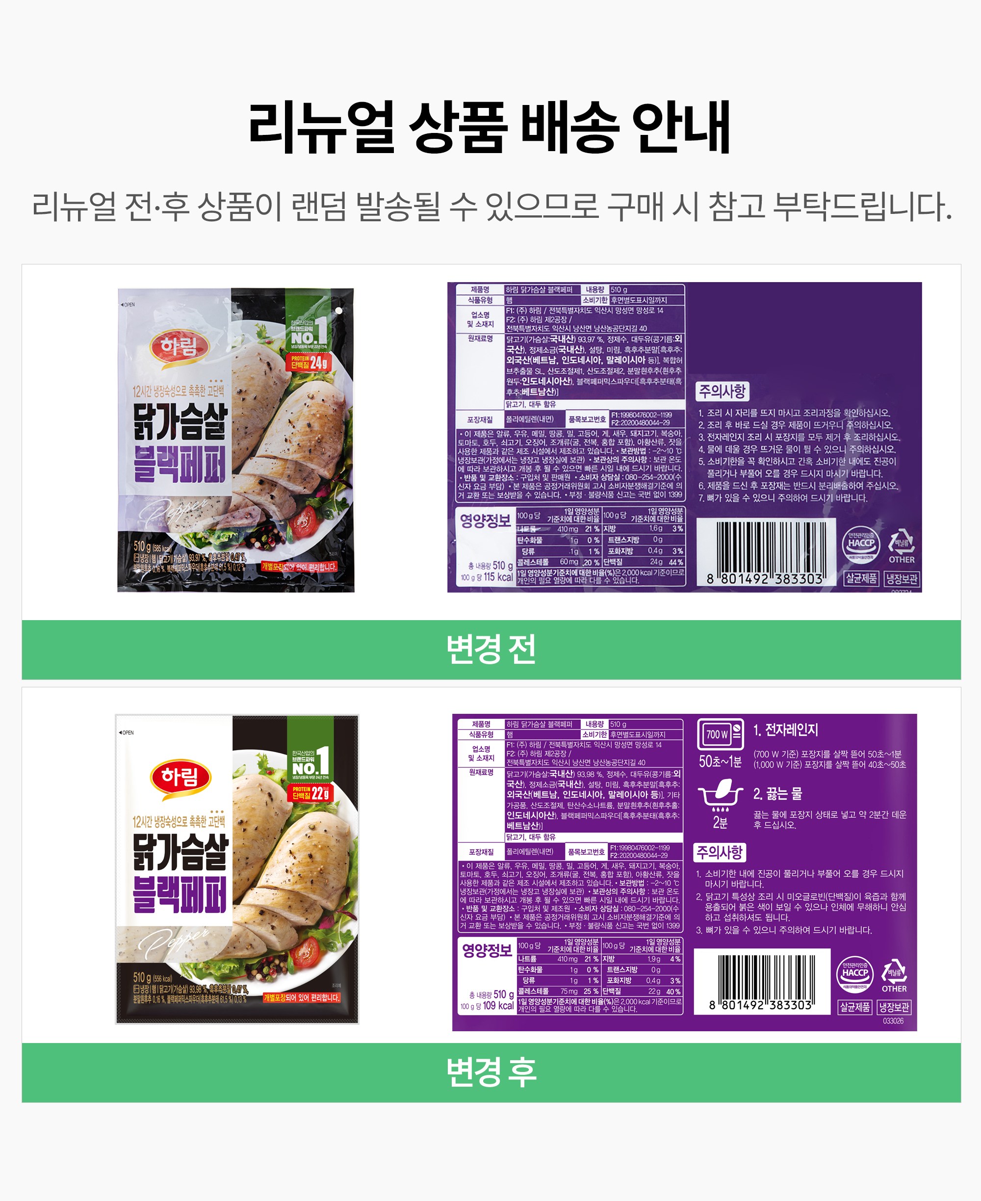 · 닭가슴살 크기에 따라 입수량이 다를 수 있으나, 총중량은 510g으로 동일합니다.