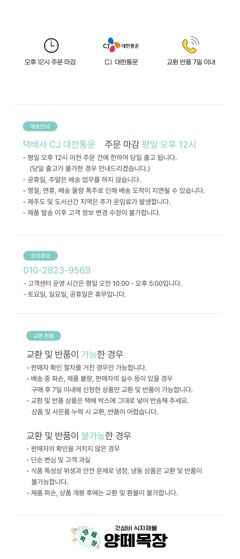 | 배송방법 | 순차배송 | 배송비 | 무료배송 · 도서산간 추가 배송비 - 제주 지역: 3,000원 - 도서산간 지역: 5,000원 |