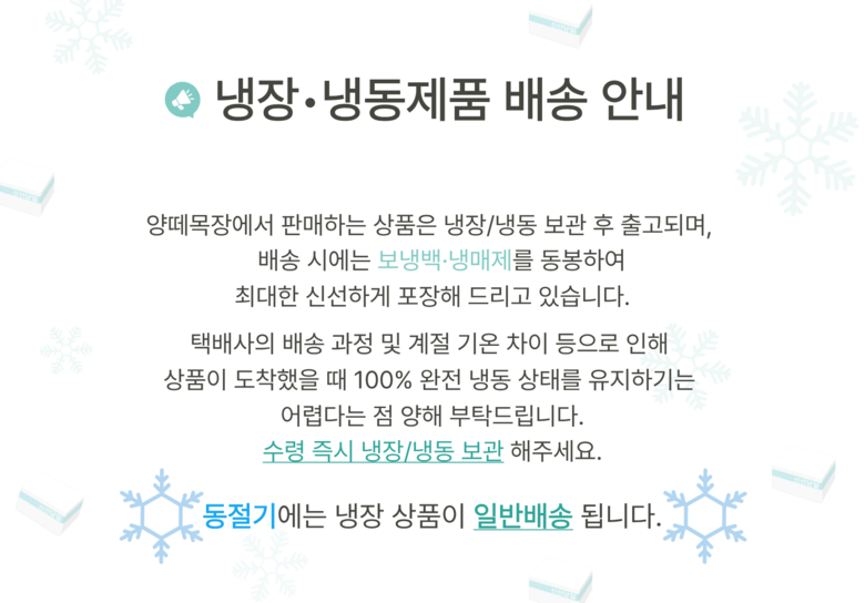 | 배송기간 | ㆍ도서산간 지역 등은 배송에 3-5일이 더 소요될 수 있습니다. - 천재지변, 물량 수급 변동 등 예외적인 사유 발생 시, 다소 지연될 수 있는 점 양해 부탁드립니다. | ||