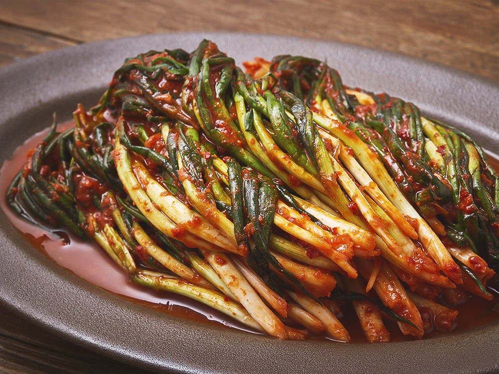갓 담가 아삭아삭한 파김치를 소개할게요. 신선한 재료가 선사하는 개운한 풍미가 일품이랍니다. 씹을수록 알싸한 감칠맛이 입안을 장식할 거예요. 육류에도, 면류에도 잘 어울리는 반찬이지요. 정갈한 파김치의 깔끔한 매운맛을 즐겨보세요.